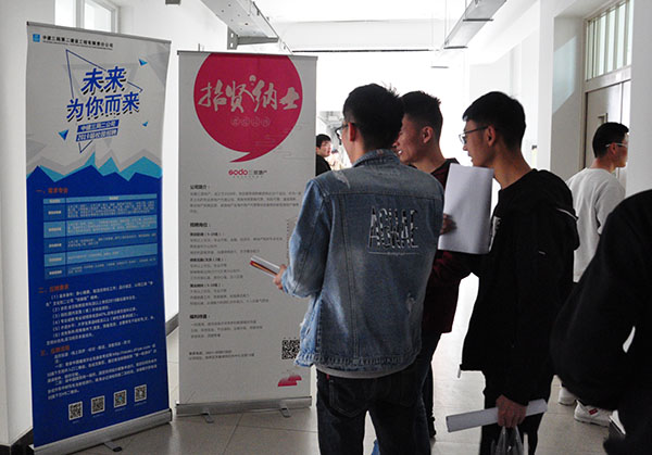 本网讯(通讯员:刘伟、刘乐)为更好地让毕业生拓宽就业渠道,3月16日下午,土木与环境工程学院举办“2019年度春季专场招聘会”。中建三局第二建设工程有限责任公司、中煤矿山建设集团、合肥迈峰网络科技有限公司等共11家企业及单位走进土木与环境工程学院,百余名毕业生参加招聘会,土木与环境工程学院副院长朱诵贵、行政秘书及毕业班辅导员深入招聘现场。