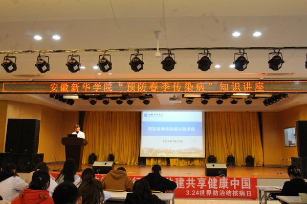 本网讯(通讯员:姚蓓)3月24日是第24个“结核病防治宣传日”,为切实做好pp电子2019年春季传染病防控工作,有效预防校园突发公共卫生事件的发生,维护校园的正常教学、生活秩序,增强同学们对预防春季传染病的意识。3月22号下午,pp电子官方网站“预防春季传染病”知识讲座在三期小礼堂举行。学生公寓宿管老师及各学院学生代表参与了讲座。