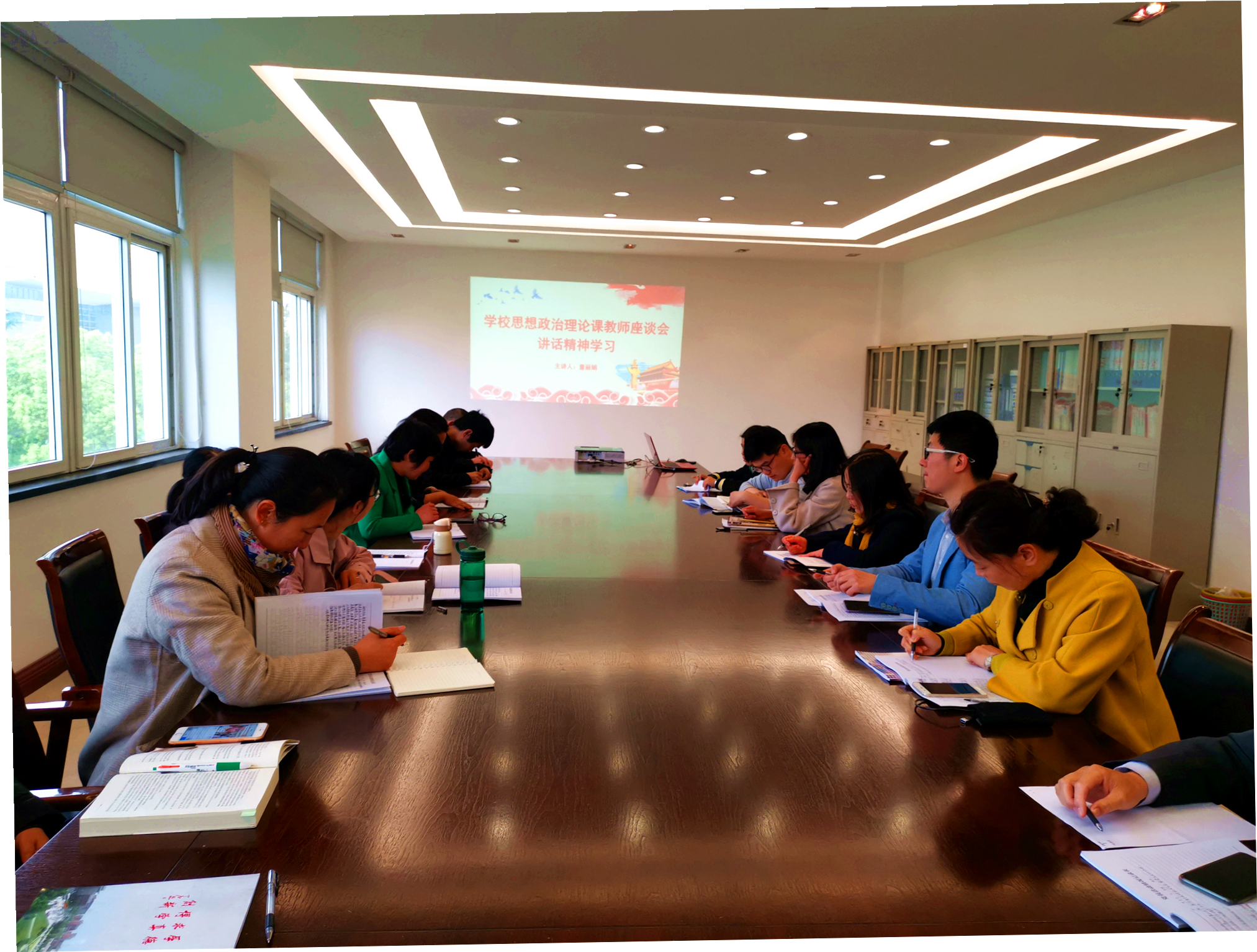 董丽娟从“要解决好一个根本问题”“办好思政课具有四个方面基础和条件”“思政课教师要具备六种素养”“八方面辩证统一改革创新思政课”“关键在党”五个方面并结合pp电子思想政治理论课建设及2019年教学工作计划,带领大家全面学习习近平总书记在学校思想政治理论课教师座谈会上的讲话精神。她指出,全体教师要深入理解认识思政课教师的作用和使命,要认真学习深刻理解习总书记关于办好思想政治理论课关键在教师的相关论述,全体教师要对照要求审视自己提高自己,做到“六点要求”,承担好着引导青少年“扣好人生第一粒扣子”的重要责任,同时要努力落实“八个坚持”,做好守正创新,切实提高思政课教学实效,全面做好立德树人工作。