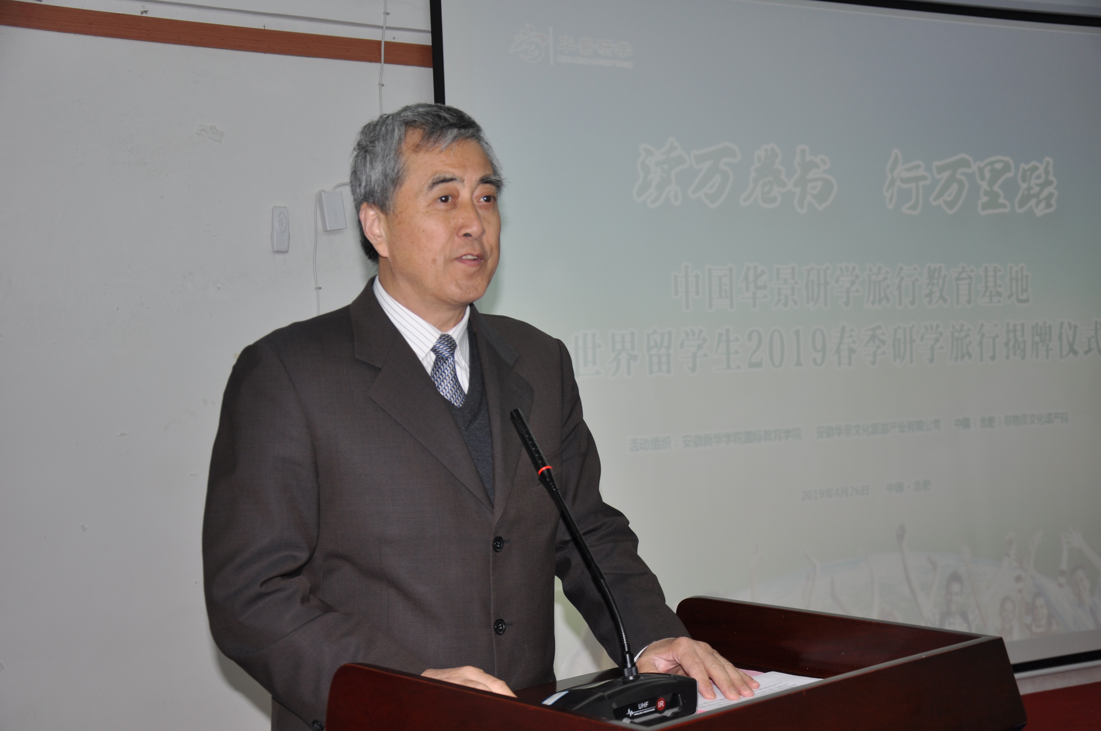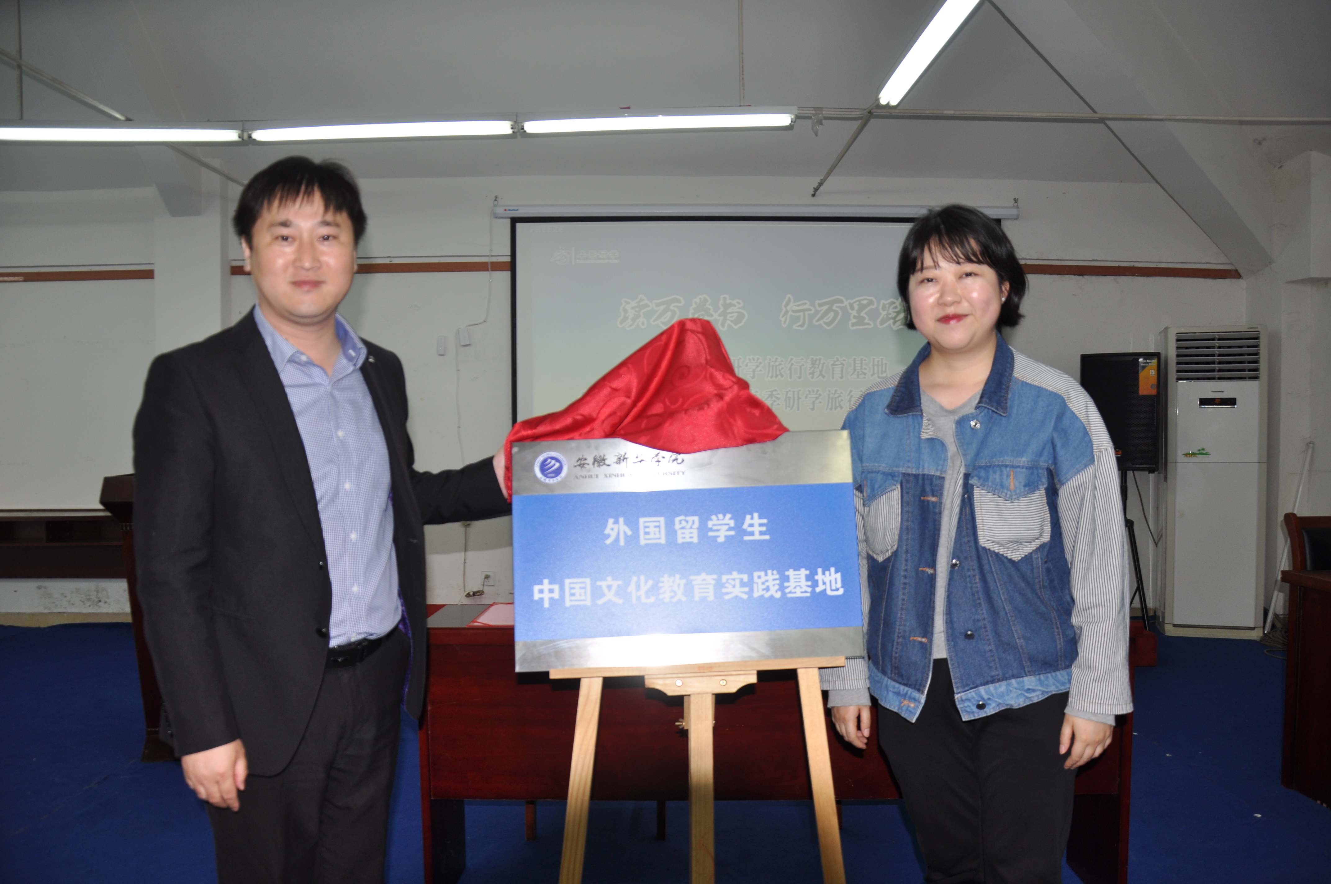 本网讯(通讯员:陈青)4月26日,由pp电子官方网站国际教育学院、安徽华景文化旅游产业有限公司、中国(合肥)非物质文化遗产园共同组织承办的“中国华景研学旅行教育基地世界留学生2019春季研学旅行揭牌仪式”在非物质文化遗产园举行。国际教育学院执行院长徐鸣、院长范东生、副院长赵倩倩带领38名留学生参加了此次揭牌仪式。