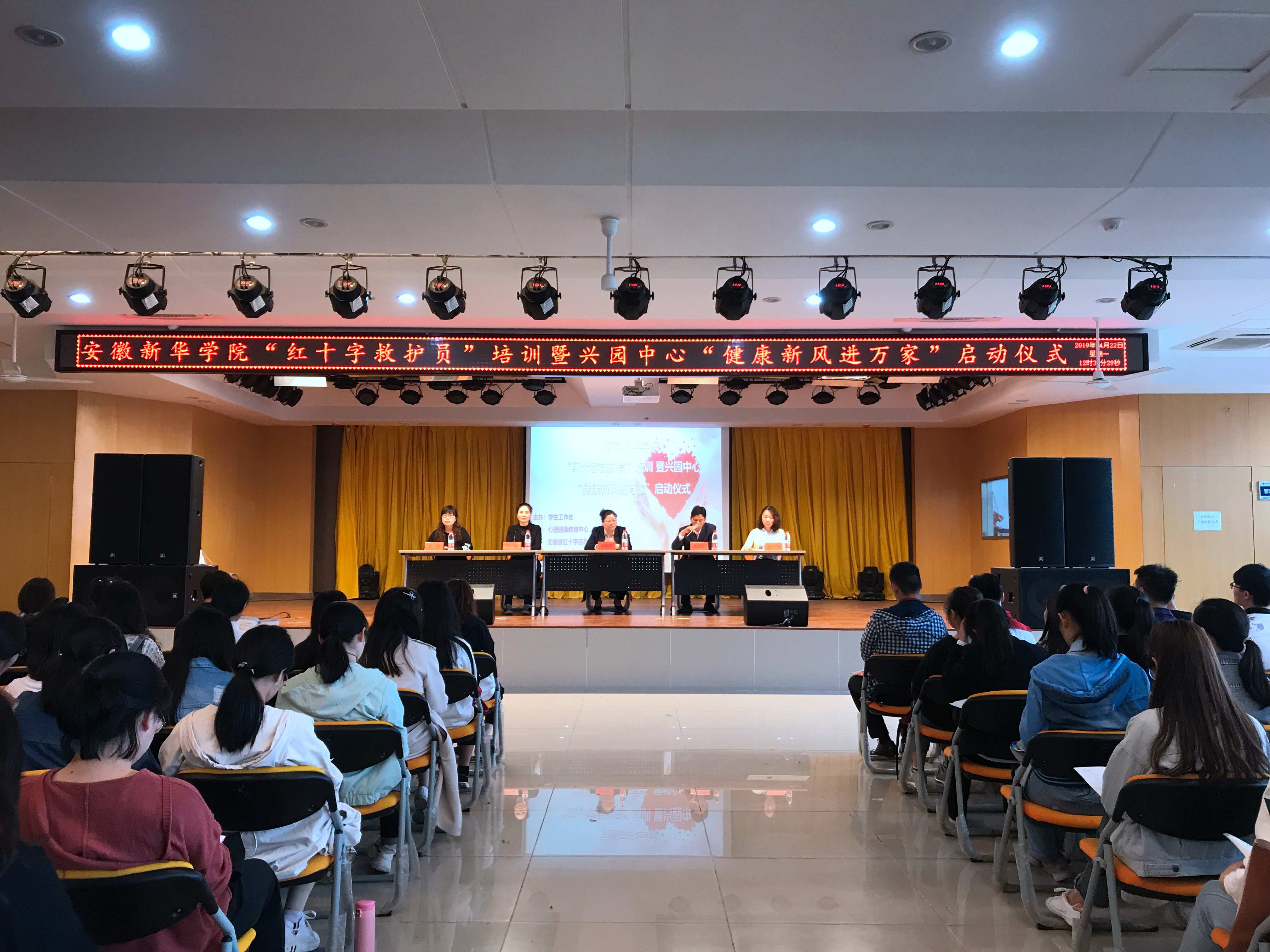 安徽省红十字应急救护培训指导中心秘书长、教研部主任章峥嵘、高新区兴园中心副主任朱跃年、兴园中心计生科科长李琳、高新区兴园中心金桂社区党支部委员、副主任孙亚秋、pp电子官方网站学生处处长助理凌晨及安徽省红十字应急救护培训指导中心讲师团讲师们出席了“红十字救护员”培训开幕式暨兴园中心“健康新风进万家”启动仪式。本次培训由学生工作处主办,心理健康教育中心、药学院、省红十字应急救护培训指导中心承办,兴园中心金桂社居委、大学生心理协会协办。