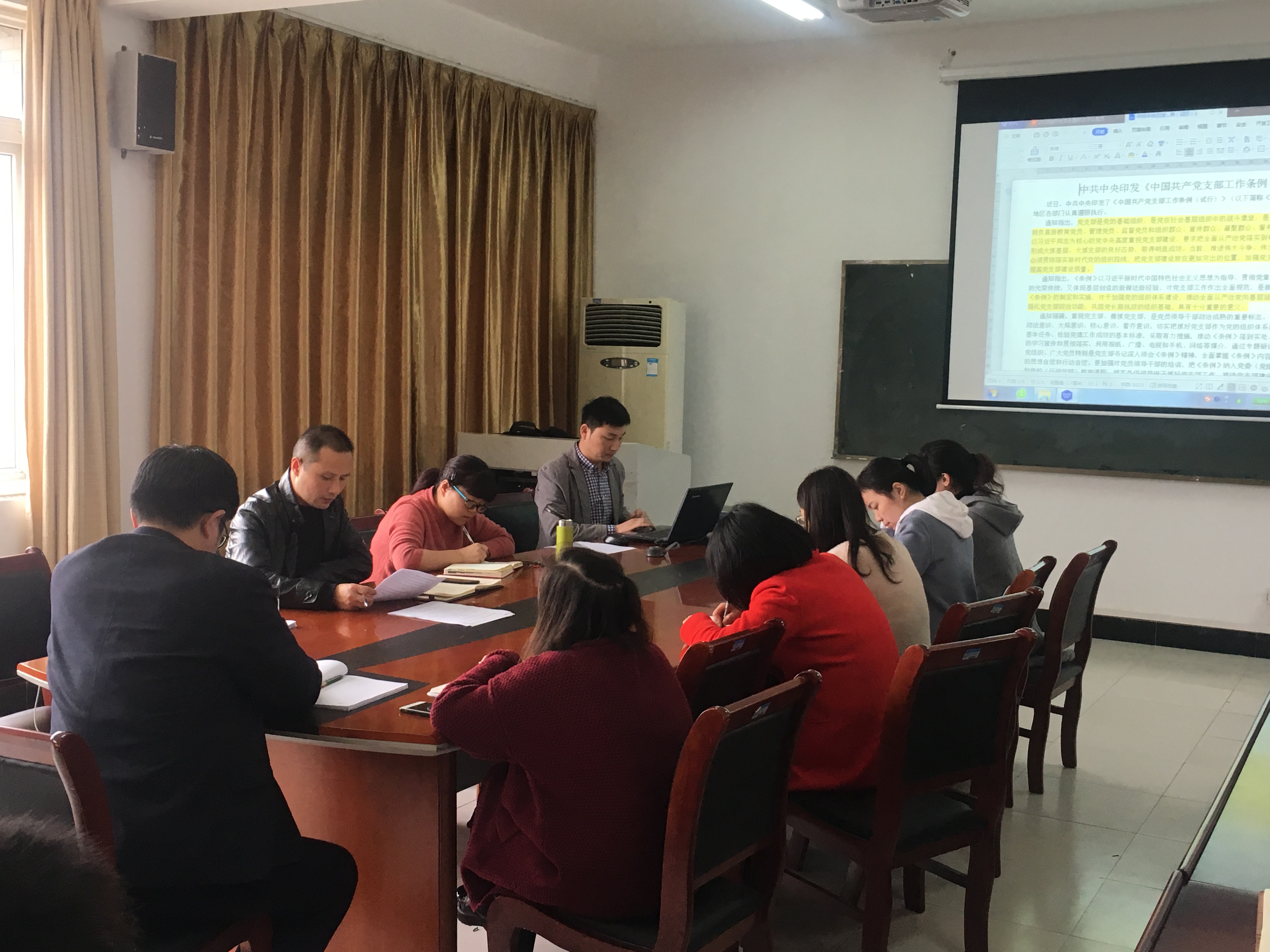 首先,商学院党总支书记王士赵带领全体党员一起学习习近平新时代中国特色社会主义思想中树牢“四个意识”,坚定“四个自信”,做到“两个维护”等一系列内容,并汇报了此次组织生活会的会前学习、谈心谈话情况。随后由吕翔带领大家再次学习解读了《中国共产党支部工作条例(试行)》文件,就对标新时代党的建设要求和新时代党的组织路线,进一步提升基层党组织组织力等方面做出细致规划。