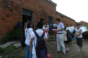 7月1日是开展实践活动的第一天,一大早,在华阳河农场第四分场小学赵校长的带领下,实践队队员们深入基层,走乡串户,向留守儿童家庭送去温暖,同时为下午的支教活动做好宣传工作。