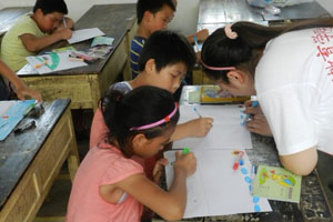 队员们把支教活动命名为“爱心课堂”,内容涵盖了自然科学、趣味语文、英语和美术。课堂上,从未接受过多媒体教学的孩子们被有趣的课件所吸引,纷纷簇拥在队员旁边观看电脑上的内容。天气炎热,细心的实践队队员还为孩子们买来冷饮消暑。