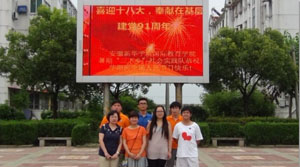 实践队在文化广场向华阳河人民送去节日问候,播放爱国主义影片《建党伟业》