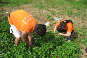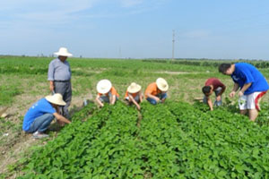 实践队不仅对棉科所的规模、运作方式、农作物种植情况进行了调研,还来到田间地头,亲身体验劳作。棉花整枝、大豆间苗、松土,虽然是简单的农活,但对来自城市的队员们来说,要做好也并不容易。经过棉科所工作人员的指导,队员们纷纷卷起衣袖,投入到劳动中,不一会儿,原本杂乱的田地就面目一新了。烈日炎炎,豆大的汗珠从队员们脸颊滴落,但队员们笑得很甜。他们说,在晴空旭日之下,亲历亲为,感受这种农作的乐趣,重新体验孩提时那首《锄禾》给我们带来的无限回味,是一件非常有意义的事。