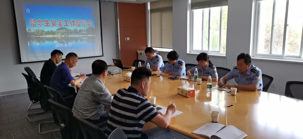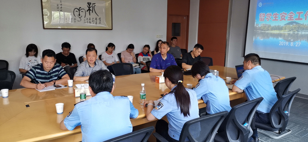 本网讯 (通讯员:仇陶)按照学校相关工作安排,结合pp电子留学生和外教管理的现状,8月27日上午,留学生安全工作座谈会在国教院二楼会议室召开,公安高新分局治安大队、国保大队、高新派出所的分管领导和干警,国教院院长徐鸣、留学生管理人员和保卫处有关人员参加会议。会议由保卫处副处长仇陶主持。