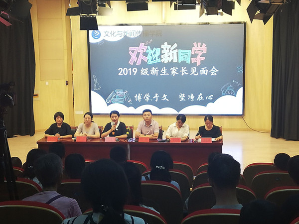 本网讯(通讯员:彭洪磊、王紫妍)8月31日,文化与新闻传播学院2019级新生家长见面会在新闻演播厅举办。文化与新闻传播学院副院长(主持工作)吕翔,副院长洪玉、朱向群以及各系主任参加座谈会。见面会由朱向群主持。