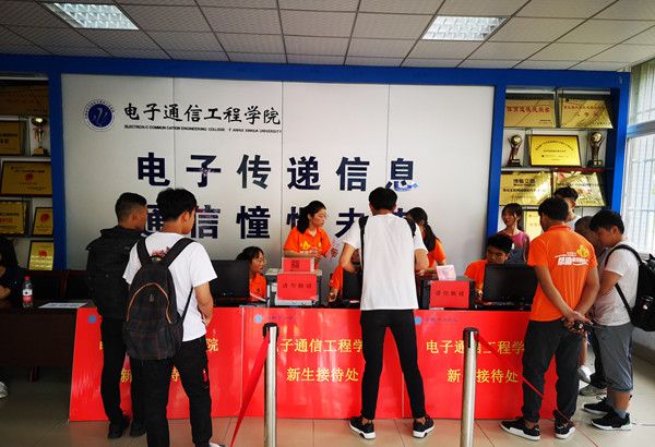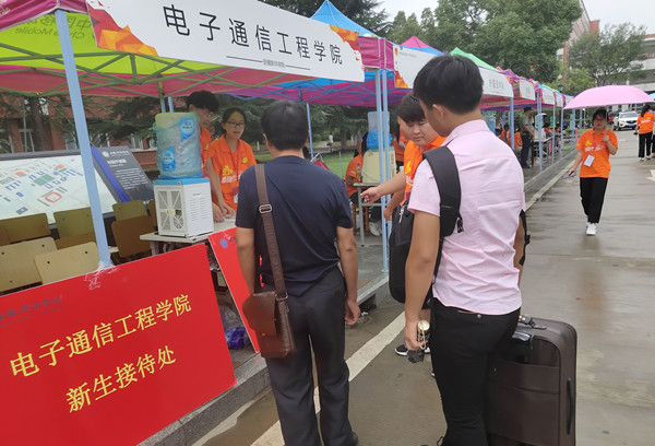 迈入校门,首先是电子通信工程学院的学生志愿者,他们用饱满的热情,用“一对一”的爱心服务为新生和家长搭建了一条有温度的迎新通道。他们穿梭在咨询台、报到处、缴费处、学生公寓、校园餐厅,校园里随处可见他们忙碌的身影,让每一位报到的学生和家长倍感尊重和关怀。