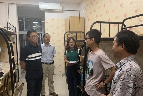 为切实做到让家长放心、让学生安心,8月31日晚,电子通信工程学院领导班子和辅导员们一起深入新生宿舍进行慰问,真正体现了学院上下同心协力,为“新”而动。院领导们亲切地同新生交谈,询问大家来自哪里、入学报到是否顺利,是否适应学校环境等,此外,辅导员们还特别提醒大家要提高自我保护意识,不要轻易相信来宿舍推销商品的人员,谨防上当受骗。同时要注意保管好自己的贵重物品。其中王琦进院长特别嘱咐同学们要相互帮助,相互理解,尽快适应大学生活,更好地进入角色。