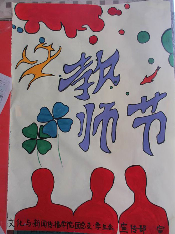 本网讯(学生记者  章玉)“晨曦细雨育桃李,老师,辛苦了!金秋硕果慰园丁,老师,感谢您!”2012年9月10日,我们共同迎来了阳光下最光辉职业的第28个节日。清晨,文化与新闻传播学院的学生们便通过多种形式向教师们表达深深的感恩与祝福。