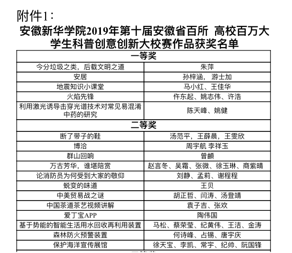 本网讯(通讯员:刁欢)9月30日,2019年安徽省百所高校百万大学生科普创意创新大赛评审结束,药学院作品取得优异成绩。药学院2018级药学专业陈天峰、姚健团队在指导老师胡艳瑾的指导下,以参赛作品《利用激光诱导击穿光谱技术对常见易混淆中药的研究》参加科普论文类校级决赛,最终获得校级一等奖。2017级制药专业袁子吉、张欢等在指导老师刁欢的帮助下,选择优秀的茶艺视频《中国茶道茶艺视频讲解》参加科普视频类决赛,并荣获校级二等奖。