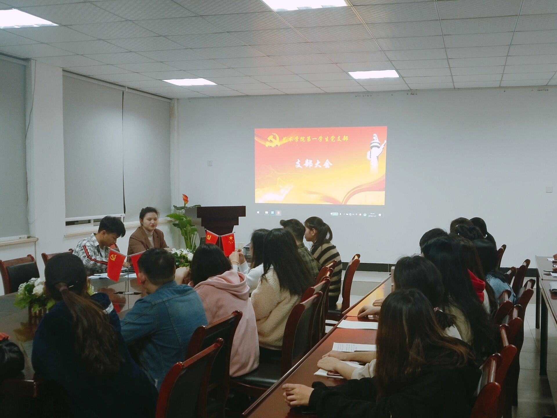 本网讯(通讯员:高扬)为党注入新鲜血液,为党培养新的一批接班人,艺术学院党总支第一学生支部、第二学生支部于11月7日相继召开预备党员发展支部大会,两个支部的书记及支部委员全部参会。