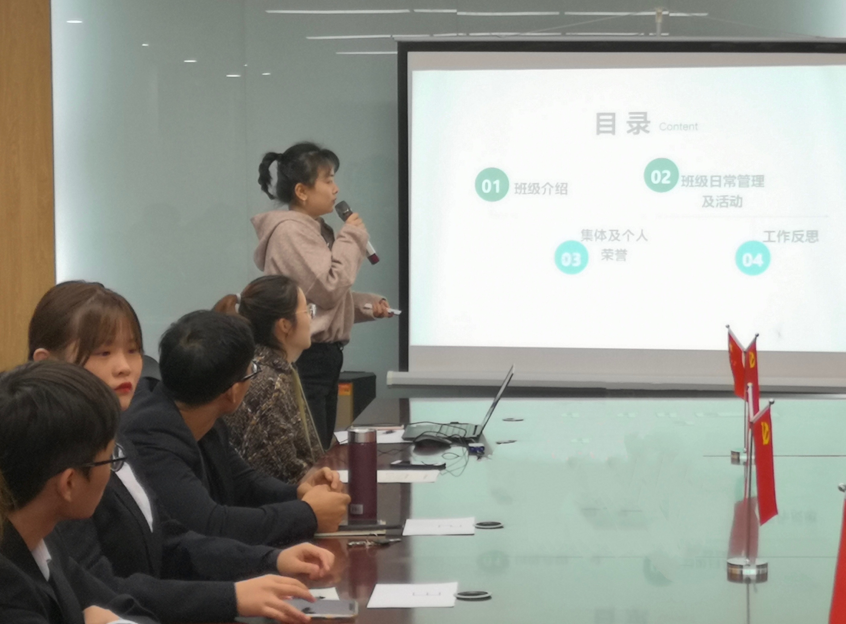 各年级班长根据自身班级的实际情况,汇报的重点各有不同。2018级的班长们总结了过去一年所取得的成绩,尤其是班级团队建设和个人在文体活动、社会实践等方面取得的荣誉,对班级的学风建设进行了重点展示;2017级的班长们更多的分享了班级对学生进行学业、考级考证、职业规划方面进行的思考,如成立考研互助小组,就业帮扶小组等。