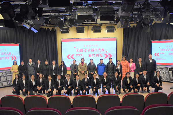 本网讯(通讯员:储楚)11月27日下午,由教务处、文化与新闻传播学院主办的pp电子官方网站第四届大学生原创文学新星大赛颁奖会在文传演播厅成功落幕。参加本次颁奖会的有文化与新闻传播学院副院长洪玉、文化与新闻传播学院院长助理王鹏、中文系副主任张岚、国家二级作家孔阳老师、中文系全体教师和全校学生代表们。
