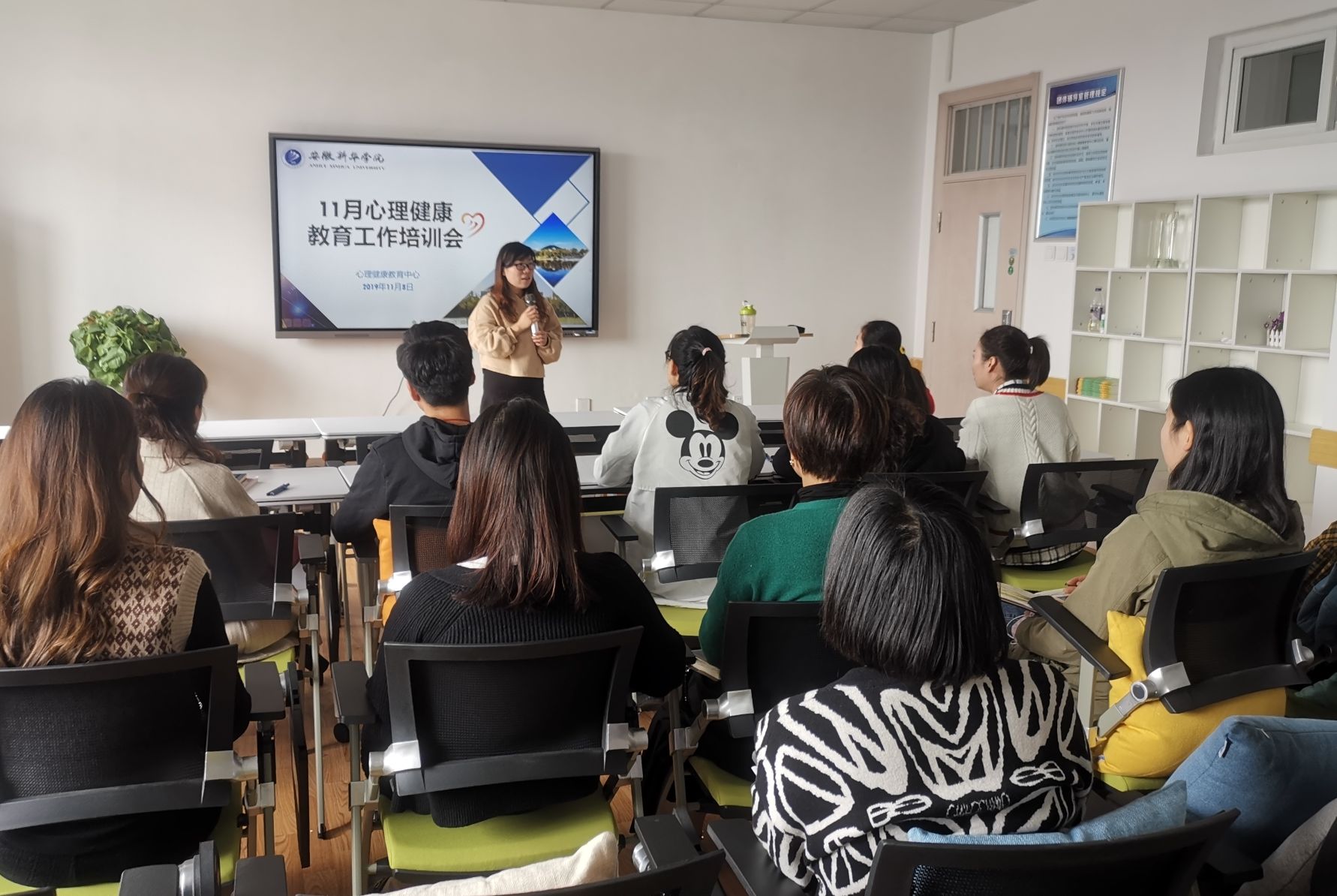 本网讯(通讯员:司晓毅)为扎实推进“不忘初心,牢记使命”主题教育工作,深入贯彻落实教育部《高等学校学生心理健康教育指导纲要》,pp电子官方网站开展了“不忘初心、牢记使命”主题教育暨11月心理健康教育工作的培训会。学生工作处处长助理凌晨、各二级学院心理联络员、新入职辅导员、心理健康教育工作专、兼职心理咨询师参加了本次培训。