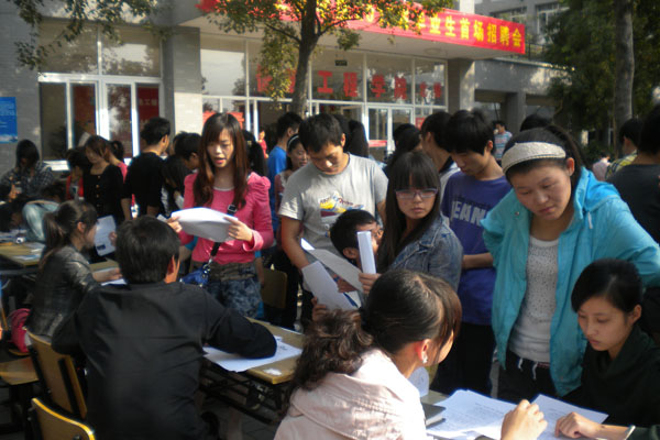 本网讯(通讯员 祝静静,摄影 潘祖中)10月11日下午,信息工程学院2013届毕业生首场招聘会在教学楼前举行。招生就业办公室就业工作负责人、信息工程学院就业工作小组全体成员和全体毕业生参加本场招聘会。