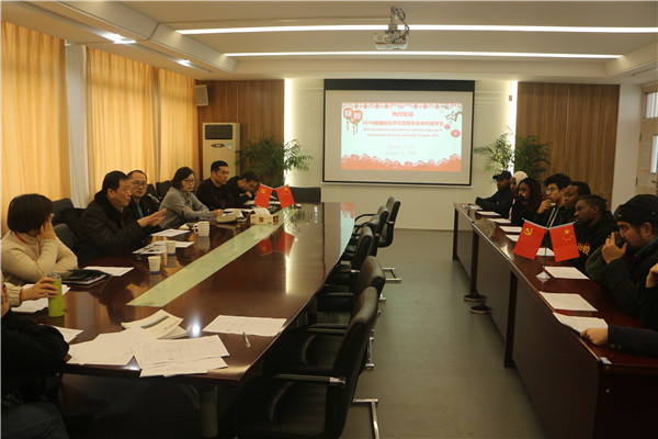 本网讯(通讯员:汪雷)为让国际留学生提前了解所学专业,经商学院与国际交流中心协商,2020年1月2日上午,商学院举办了2019级留学生专业学习座谈会。国际教育学院执行院长徐鸣、教务处处长助理孟翠翠、国际教育学院院长助理黄喆、国际交流合作处长助理程宜、国际交流合作处教师吴海峰,商学院执行院长翟荣兵、副院长刘冬艳、国际经济与贸易专业负责人汪雷、国际经济与贸易专业教师代表邹彦菁,全体2019级留学生参加了此次交流。会议由执行院长翟荣兵主持。