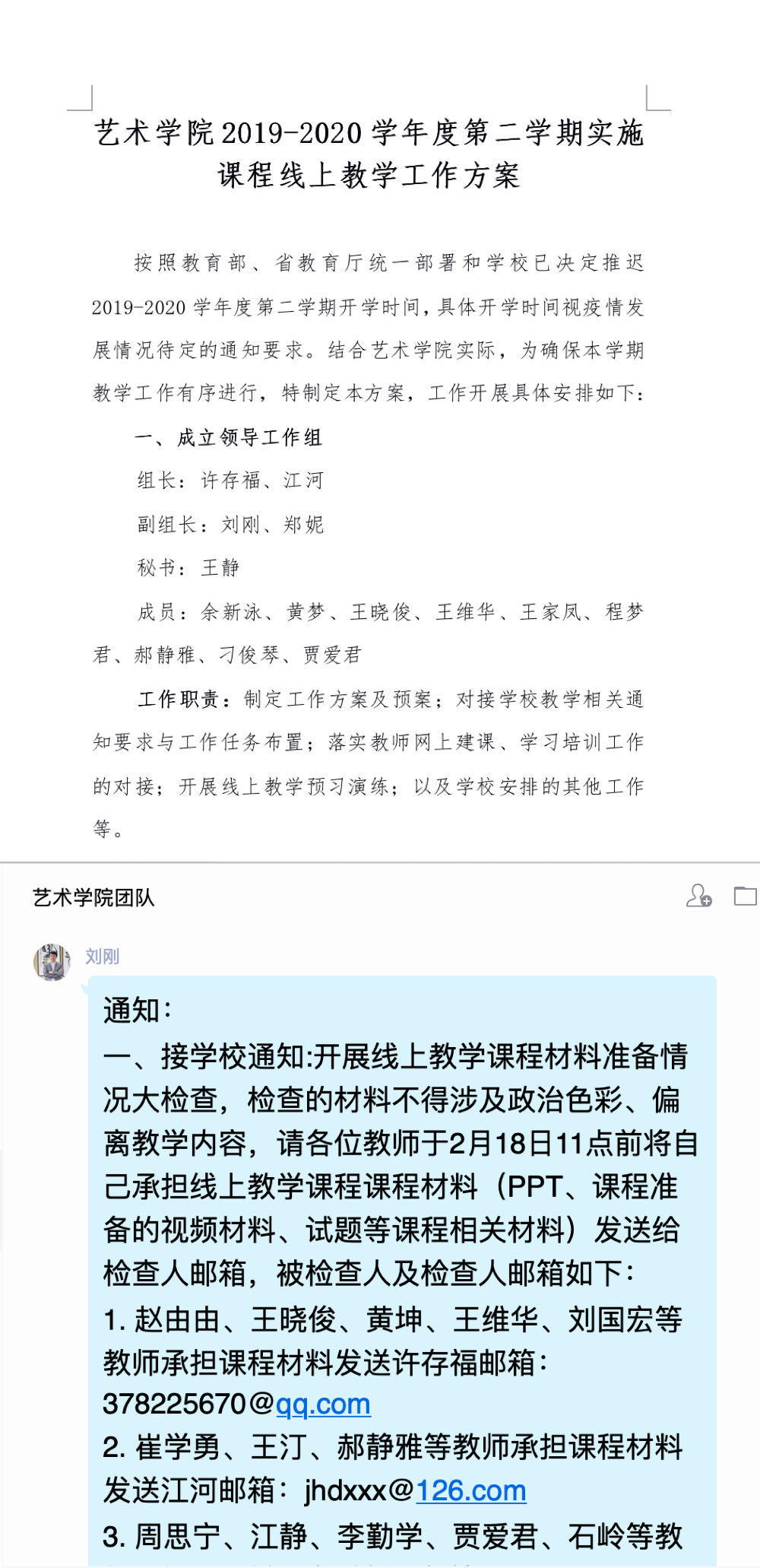 为帮助教师在线上教学中的沟通渠道通畅,艺术学院于2月14日已实现教师与任课班级建立沟通渠道,并保障教学监控小组与教师、辅导员、任课班级之间的紧密联系。