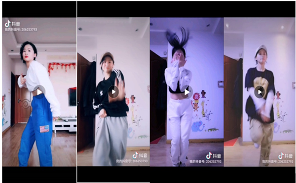 中高级俱乐部中基础较好的学生可以通过抖音平台跟老师同框录视频,一方面有助于学生对比性的纠正自己的错误,提高动作质感,激发学生独立思考的能力,挖掘学生对舞蹈动作的灵感,另一方面可以激励基础较弱的学生,在特殊时期积极练习街舞,把跳舞当成每天生活的一小部分,提高学生身体素质,强身健体,为开学返校打好坚定的基础。