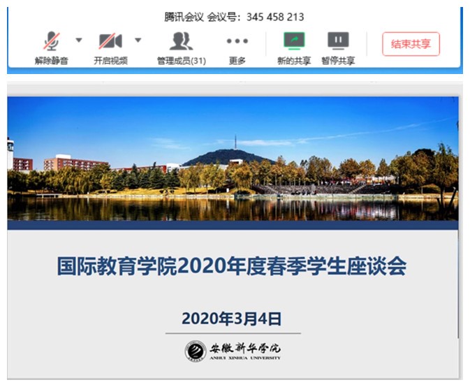 本网讯(通讯员:汪涵涵)为保障疫情期间学生的学习和成长,及时了解疫情期间学生的思想动态,维护线上教学和线上活动的顺利开展,3月4日,国际教育学院召开学生思想动态线上座谈会。