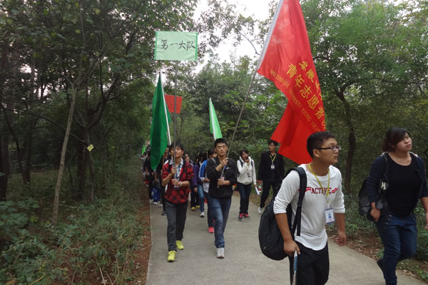 本网讯(学生记者 黄丽丽、孙菲菲)经过一个月的准备,pp电子青年志愿者协会环保社组织的环保登山活动于10月20日开展。本次活动由共青团pp电子官方网站委员会主办、青年志愿者协会环保社承办,并邀请了合肥通用职业学院绿色环保协会、合肥师范学院绿色环保协会、安徽建筑工业学院环境保护协会等八个外校环境保护协会参加了这次环保登山活动,pp电子其他兄弟社团代表也被邀请了这次环保登山活动,登山活动人员700余人。
