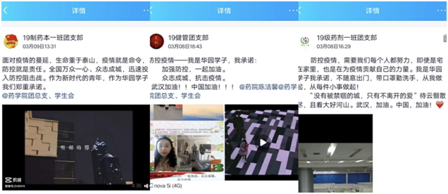 在抗疫面前,药学院学子们充分认识到自身的责任和义务,做好自身防护与建设,凝聚起一点一滴的力量,即使在家也不能掉以轻心,疫情当前,学习不止,共同期待战胜疫情的那一天。药学院全体师生踏实做好每项工作,相信如约而至的不仅是春天和樱花,还会有一个更加团结、更加强大的祖国!
