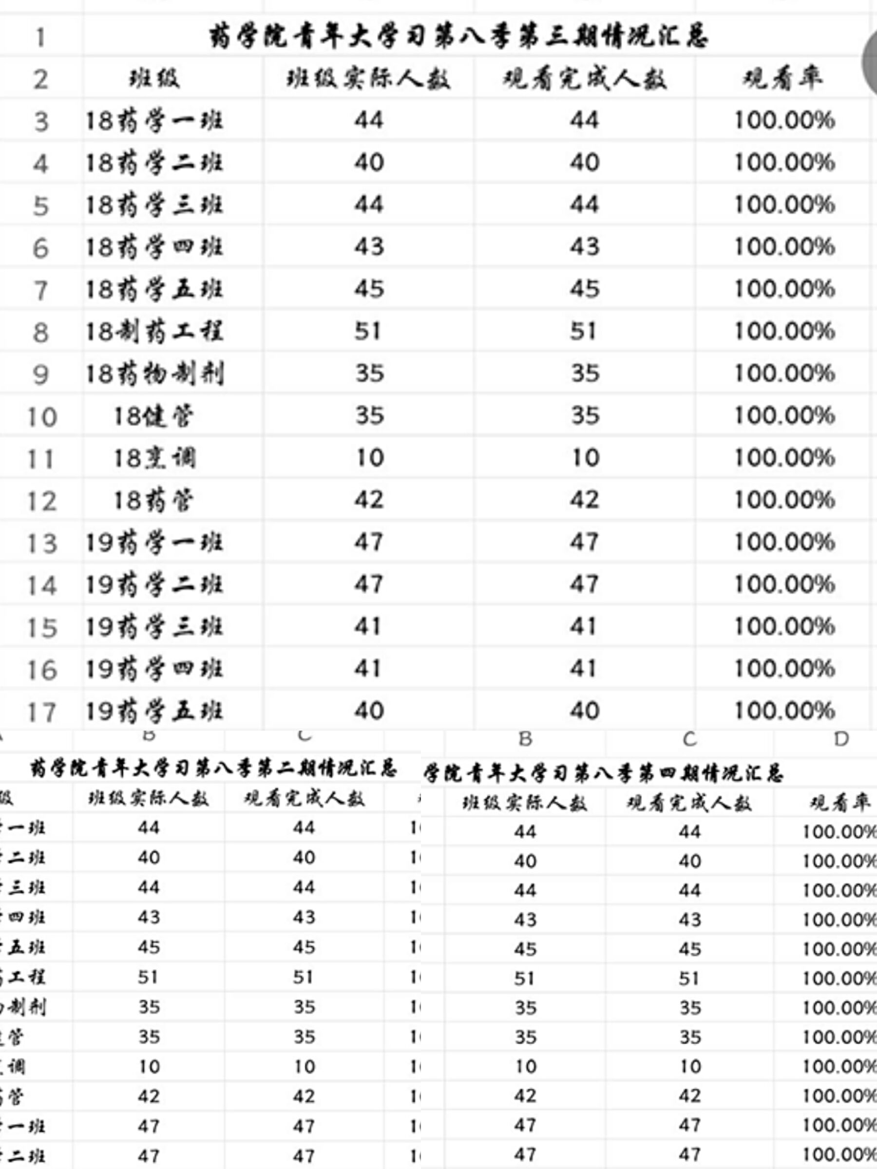 我院“青年大学习”观看率显著增高,第八季第二期开始,药学院的学习观看率始终保持在100%。