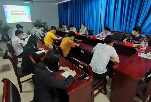 本网讯(通讯员:吴美红)为积极响应国家“大众创业,万众创新”的号召,电子通信工程学院在线上办公期间了成立创客工作室,成立仪式于6月3日下午正式举行。电子通信工程学院行政院长柯姗姗、行政秘书吴美红、“职业发展”辅导员工作室成员李秀梅、钱静、郑泰、陈晓芳以及学院各学生社团组织代表参加本次成立仪式。会议由吴美红主持。