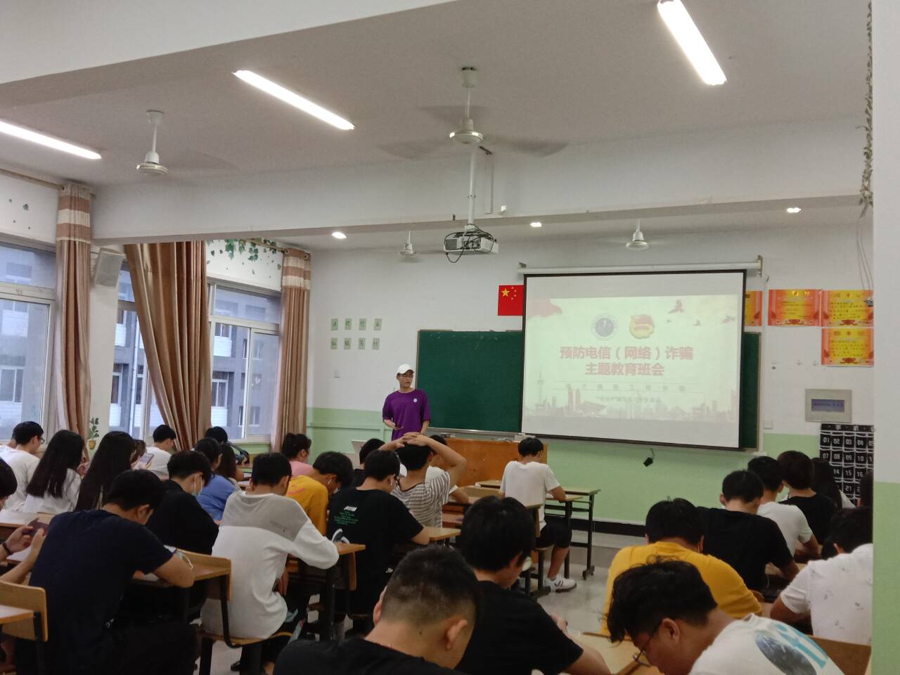6月10日至6月13日,信息工程学院收集整理各类防骗视频,并统一组织,规定时间规定地点,要求各班级进行防电信诈骗知识学习。视频中各类生动形象的案例,令学生们既了解到各种诈骗类型,如:假冒公安机构诈骗、以提供低息贷款为诱饵诈骗,也学习到诸多防范诈骗的知识。