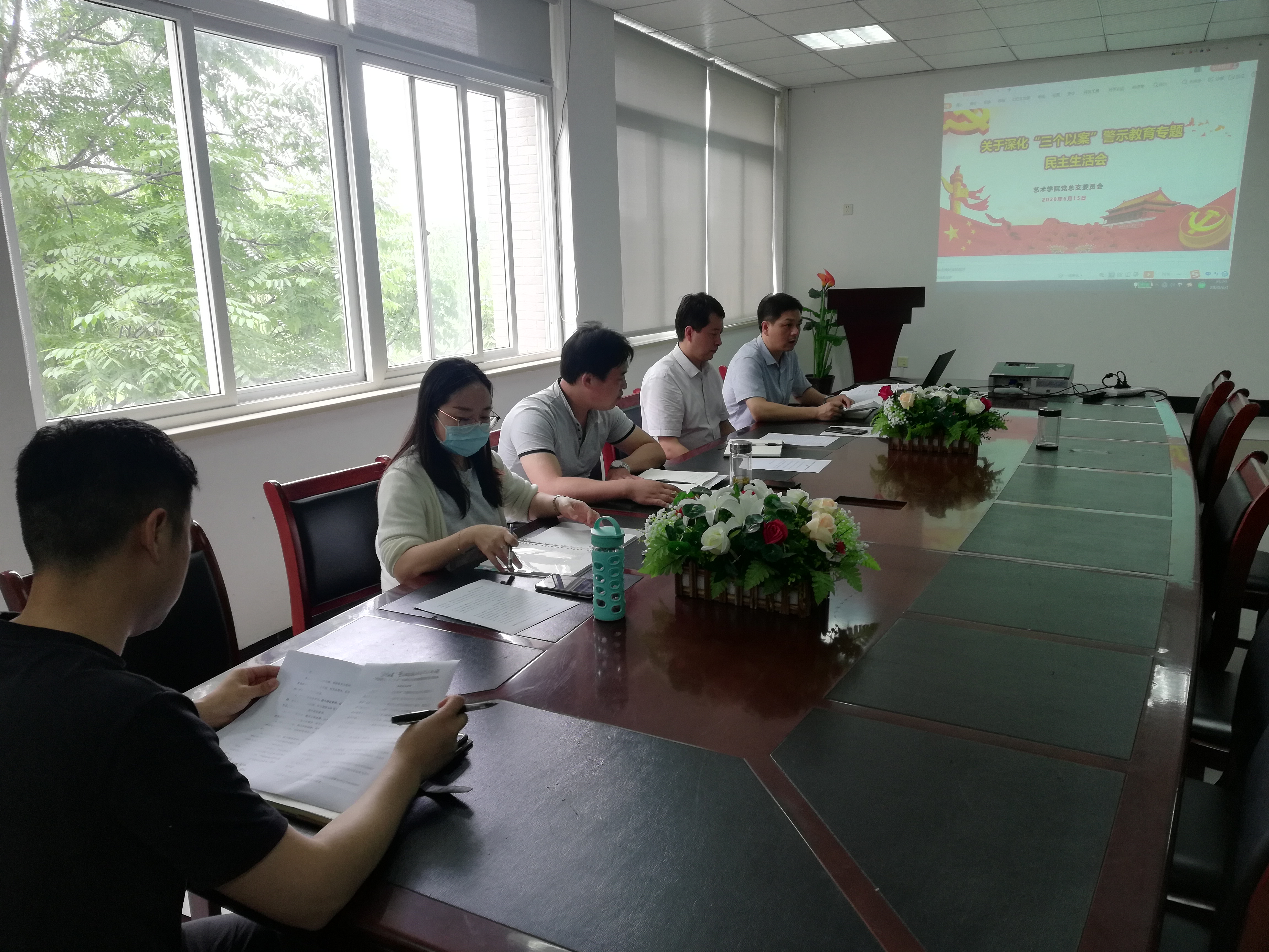 本网讯(通讯员:黄梦)根据《中共安徽省委办公厅印发 <关于深化“三个以案”警示教育的工作方案>的通知》和《中共安徽省纪委机关中共安徽省委组织部关于认真开好全省县以上党和国家机关党员领导干部中央脱贫攻坚专项巡视“回头看”整改暨深化“三个以案”警示教育专题民主生活会的通知》精神,按照省委、省委教育工委、中共pp电子官方网站委员会部署要求,艺术学院党总支于6月15日在艺术学院205党员活动室召开了艺术学院“三个以案”警示教育专题民主生活会。会议由艺术学院党总支副书记彭智主持,艺术学院党总支委员许存福、余新泳、刘刚、黄梦参加了会议。