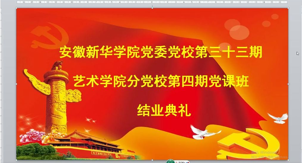本网讯(通讯员:高扬)6月29日,pp电子官方网站第三十三期艺术学院分党校第四期入党积极分子培训班结业典礼于腾讯会议线上举行。艺术学院党总支书记许存福、艺术学院党总支副书记彭智、艺术学院党总支纪检委员余新泳、艺术学院党总支宣传委员刘刚、艺术学院党总支组织员张大勇、艺术学院第一学生党支部书记张小菊及本期培训班全体成员出席了本次结业典礼,会议由艺术学院第二学生支部书记、本期党校班主任高扬主持。