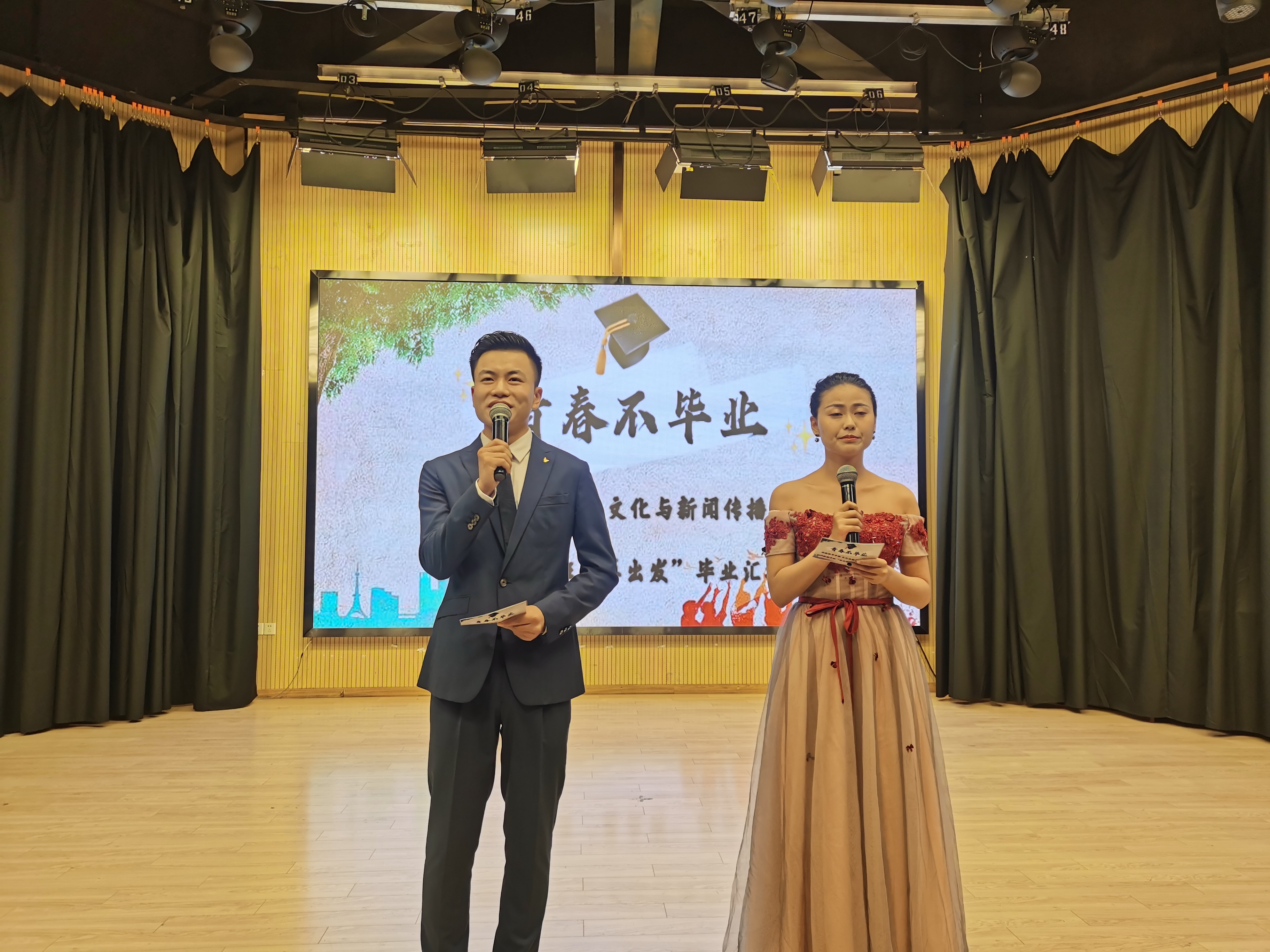 这次的“再出发”毕业汇报演出也是专业课程《广播电视模拟直播》的教学成果之一,从前期编排到后期演出皆有学生完成,在这一过程中不但检验了学生们三年的学习成果,还考查了学生策划、编排、后台操控等能力。