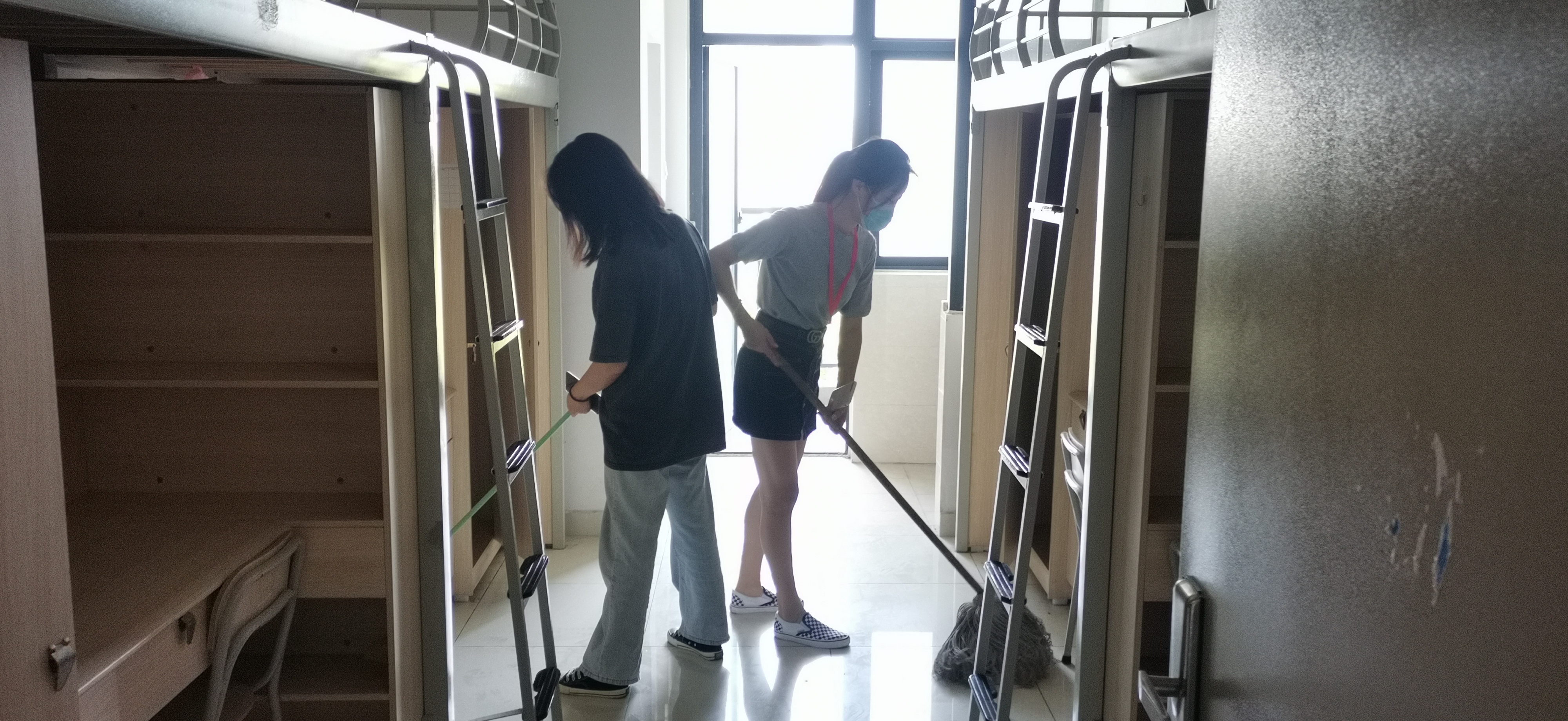 结合宿舍排查,大家也辛苦的为新生宿舍进行打扫和整理,经过一上午的辛苦劳动,宿舍环境焕然一新,为即将入校的新生营造了干净、整洁的住宿环境。