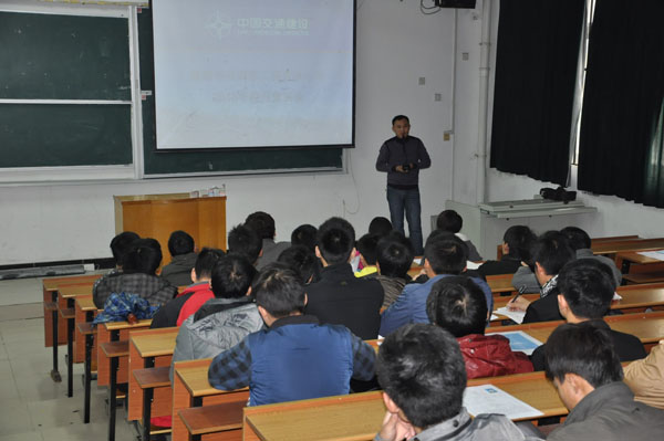 本次招聘会主要分为二个部分。第一部分为公司宣讲。由路桥华祥公司人力资源部韩修海总经理进行公司情况介绍。路桥华祥国际工程有限公司是交通部第一公路工程局下属的唯一具有对外经营权的公司,公司产品涉及了公路、市政、港口、铁路、房建、轻轨、水电、交通工程、机电施工等九个行业领域,工程项目以京津冀为中心,覆盖了全国20余个省、区、直辖市。为了让同学们对公司有更加直观细致的了解,韩经理还给了同学们现场答疑的时间,大家就自己所关心的问题积极发问,例如:“公司发展潜力如何?”“工作的地点及公司相关待遇问题”“公司人才招聘的具体专业需求”等等,韩经理对同学们所提的问题做了一一回答。