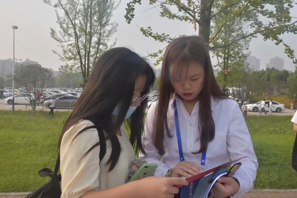 正式的迎新很快来临,新生们开始报到。郑梦竹一直来往于帐篷点与院内,为新生们提供真诚贴心的服务,得到了新生及家长们的一致认可。