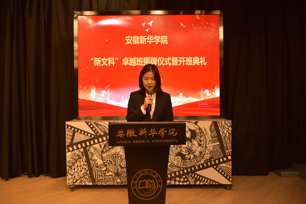 随后,洪玉介绍卓越班教学安排。方纯洁、何村、王胜勇、张冉共同为“新文科”卓越班揭牌。