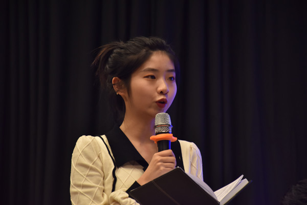 在经过初赛激烈的角逐,共有15名来自不同年级、专业的学子来到决赛舞台。比赛共有三个环节。第一环节“现场进行时”,每位选手将对指定新闻素材视频进行一分钟现场报道,考察选手现场控场能力以及基本专业素养。第二环节“新闻发布会”,通过现场模拟新闻发布会形式,十位晋级选手分两组进行现场采访,选手们就“开设新文科卓越班”、“毕业生实习就业工作”两场发布会提出采访问题。这不仅考验选手的专业功底、思维逻辑还考察到了选手的临场发挥能力。选手们的出色表现赢得阵阵掌声。最后一个环节“聚焦新时刻”是本场比赛最为激动人心的一场角逐,晋级的七位选手对抽取的新闻事件进行现场评述。面对“信义女子魏月董”事件,2018级播音学子杨兴林从个人社会责任与医患之间的感人故事做出了阐述,2019级播音学子钱陈抓住“文明社会的建立”、“开发新时代下老年人公共服务”两个论点对“老人上公交车出需示健康码”事件进行了完美诠释。最后,蔡正兰教授对选手表现给予肯定,并提出“三语两感”的建议,即对语体、语音、语言做出要求,对记者的现场感和身份感提出强调。经过激烈的角逐,最终2018级播音与主持艺术专业李茂涵拔得头筹,获得本次大赛一等奖。