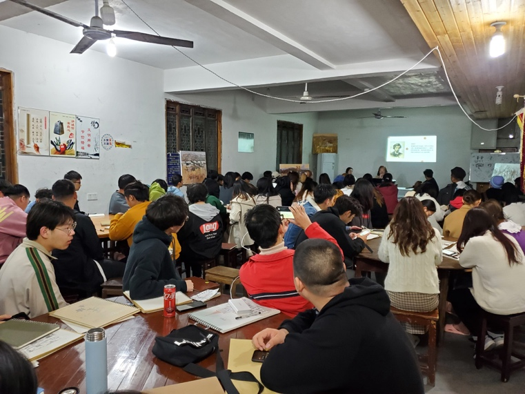 本网讯(通讯员:陈阳)为进一步提升院外写生教学学生风景绘画水平,11月11日,在屏山写生基地举行由徐公才教授做的“风景写生中的艺术处理与表现”专题报告,带队教师刘国宏、陈阳和此次写生的全体学生参加了报告会,会议由陈阳主持。
