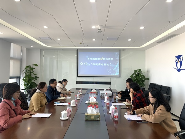 本网讯(通讯员:姚丽莎)12月16日上午,大数据与人工智能学院执行院长盛晓青、副院长万家华、信息科学系副主任徐梅、大数据教研室主任姚丽莎一行四人赴安徽数据堂科技有限公司开展调研,并签订共建实习基地协议。数据堂公司总经理吴鑫坤、副总经理张子斌等热情接待了盛晓青一行。