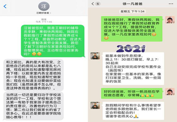 本网讯(通讯员:郑晖)为进一步掌握寒假“四个一”庭劳动教育活动的开展进度与实际效果,近日,城市建设学院通过QQ分享、短信回访、电话沟通等方式进行了一系列跟踪调查。结果表明,在活动全面开展短短两周的时间里,不仅广大同学在家庭劳动中得到了锻炼、成长,也让学生家长们切实感受到了孩子的变化。