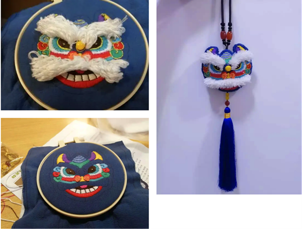 20互联网金融1班的聂晶娟利用寒假时间学习了传统手工刺绣,亲手制作平安符挂于父亲车中,希望可以带去一份祝福。