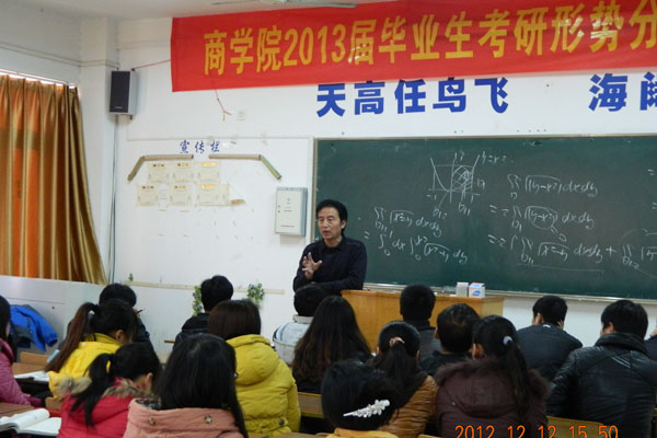 本网讯(通讯员 虞海霞)12月12日下午,商学院邀请到合肥工业大学工会主席李申文教授,为该院2013届毕业班学生作了考研形势分析报告会。
