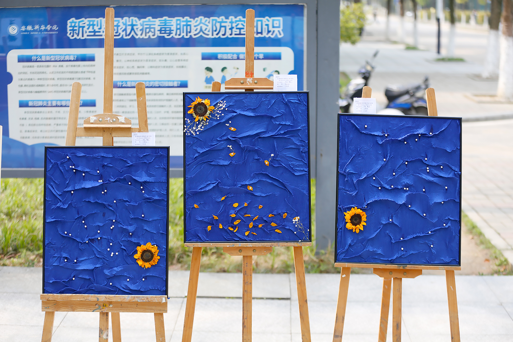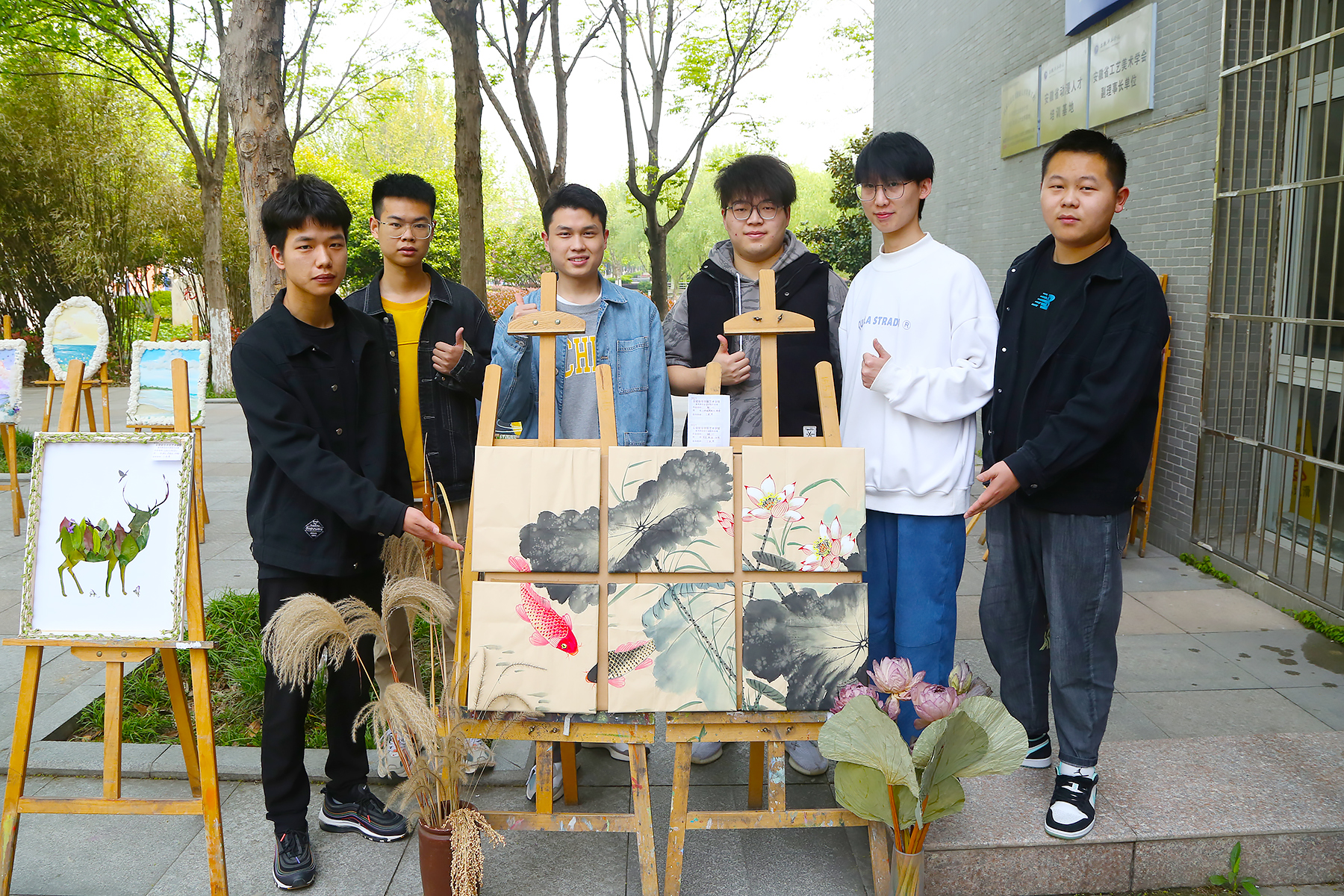 其中有一幅名叫《鲤对》的作品是由6名学生各自创作6幅画作拼接而成,“很喜爱鲤鱼,从灵感构思到最终完成画作仅花费了一周时间。”画作作者,2018级艺术学院环境设计3班的学生王琪琛说道,“这次不同于以往的课堂,在老师的帮助下,我们寝室6个人通力协作,共同完成创作及展出全过程。不仅积累了学习和实践经验,更给了我们很大的信心,期待未来有更多机会参展。”