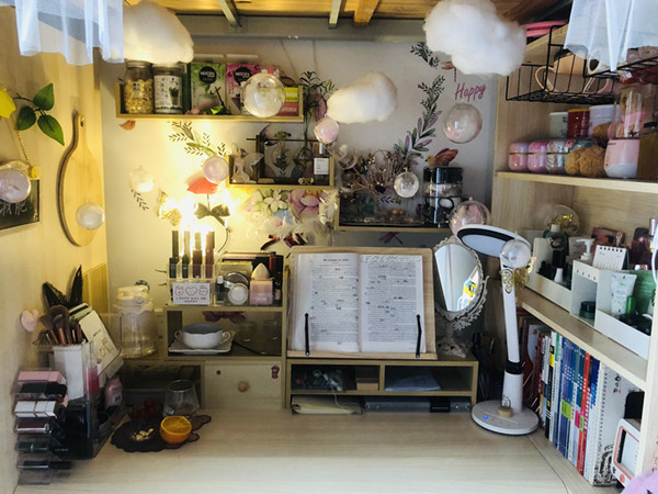 寝室作为学习、生活、休息的场所,占据了学生大学生活的大部分时间,而书桌更是寝室内的一片重要小天地,是学生学习、日常生活不可或缺的一部分。近期,外国语学院在劳动教育“四化”工程实施过程中,以寝室书桌作为劳动对象,指导学生在净化书桌的基础上,结合个人爱好、专业特色等,旨在打造出形式各样的绿化、美化、文化的书桌风格。