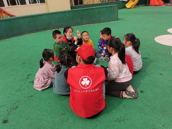 室外开展娱乐活动令小朋友们十分兴奋,志愿者则是寸步不离地跟在孩子们身后,充当守护者的角色。他们笨拙又小心翼翼的动作无不体现了对小朋友的关爱,志愿者们眼神中透露的都是对孩子们满满的喜爱与关心。通过各类小游戏,志愿者们和孩子们很快融合在了一起。
