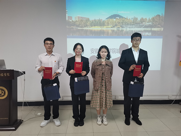 李燕飞宣布获奖名单,一等奖何欣雨组,二等奖程艳组、葛娟组,三等奖叶宏基组、涂德艳组、储伟组,最佳创意奖何欣雨组,最佳人气奖马晓敏组,最佳视觉奖曹婷婷组。最后,由四位评委老师为获奖队伍颁奖并合影留念。