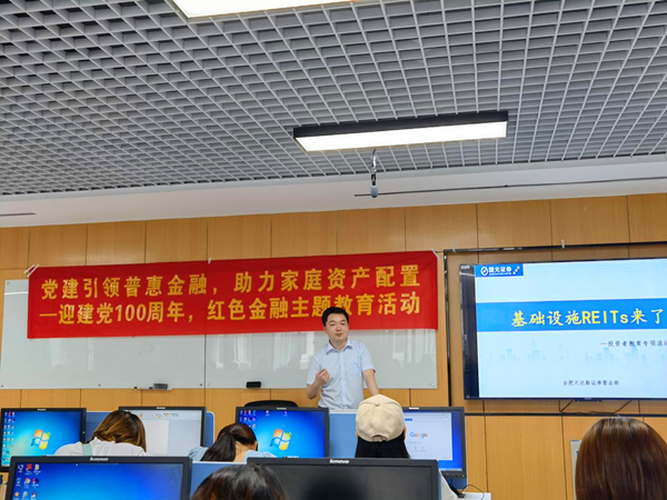 本网讯(通讯员:邓洁)为庆祝中国共产党成立一百周年,践行“学党史、悟思想、办实事、开新局”的要求。6月16日,财会与金融学院联手国元证券股份有限公司开展“我为师生办实事”之“党建引领普惠金融,助力家庭资产配置”红色金融主题讲座。财会与金融学院副院长张璐、院长助理邓洁,国元证券股份有限公司高级投资顾问吴晟宇、罗雪等一行4人以及pp电子部分师生代表参加此次讲座。讲座由邓洁主持。
