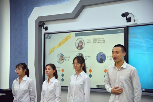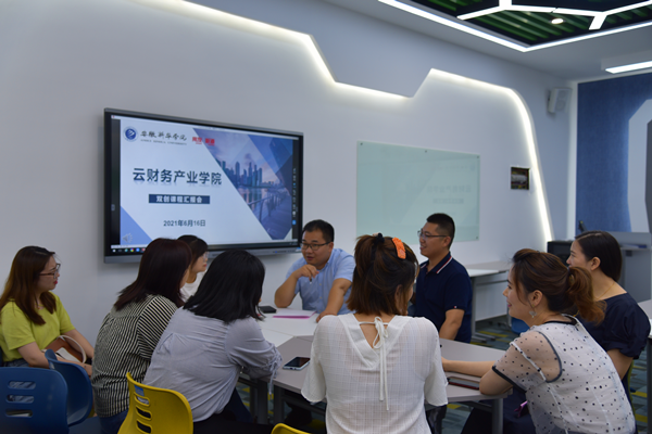 云财务产业学院自2019年6月成立以来,校企双方共同制定新的人培方案,将区块链、财务大数据、财务共享中心规划与设计、智能财务等核心课程纳入新的课程体系,已成立两届财务管理(用友新道卓越)班,在校生239人。本学期,校企双方经过师资培训、双师研讨、师生模拟等环节对教学内容及方法进行多轮论证,共建《VBSE创新基础》《VBSE创业基础》《VBSE成本会计》《VBSE管理会计》《会计信息系统》五门课程。