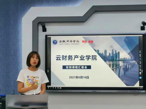 本网讯(通讯员:周杭群)为加快推进云财务产业学院发展步伐,加强教育教学改革的成果展示,6月16日,财会与金融学院开展云财务产业学院第二期课程成果汇报会。财会与金融学院副院长(主持)濮明月、副院长张璐,新道科技股份有限公司双创教育顾问郭有磊、校企合作总监康阿朋、高级教育顾问黄锐,财会系全体教师及2019级、2020级财务管理(用友新道卓越班)学生代表参加汇报会。会议由学生李明珠主持。
